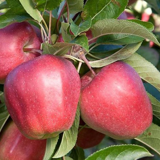 Beliebte Dessertsorte des Winters mit dunkelbraunem, länglichem Apfel und grünem Fruchtfleisch. Die Frucht hat ein angenehmes Aroma und eine mild-säuerliche Note.