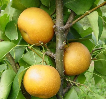 Die asiatische Hosui-Birne gehört zu den Sommersorten mit rostigen Früchten.