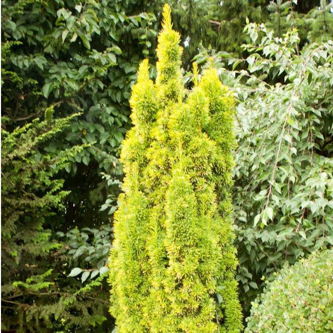Säulenförmige, langsam wachsende Eibe von auffallend gelber Farbe.