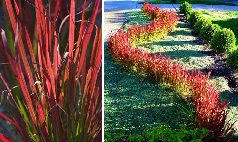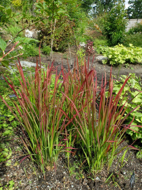 Bei unseren Bedingungen blüht sie nicht. Gras mit feuerroten Blättern an den Spitzen. Je mehr Sonne es bekommt, desto intensiver werden die roten Blätter. Es ist ratsam, die Pflanze für den Winter mit Nadelreisig abdecken.