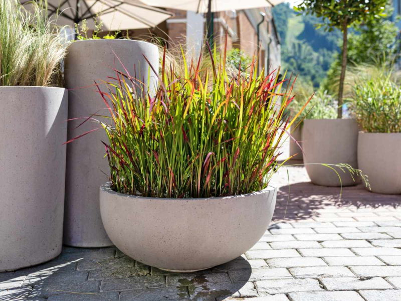 Bei unseren Bedingungen blüht es nicht. Gras mit feuerroten Blättern an den Spitzen. Je mehr Sonne es bekommt, desto intensiver werden die roten Blätter. Es ist ratsam, die Pflanze für den Winter mit Nadelreisig abdecken