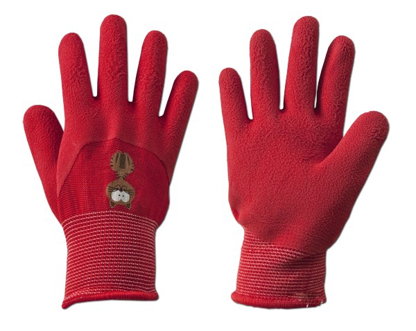 Schützende Kinder-Arbeitshandschuhe aus Polyester und mit Schaumlatex beschichtet.