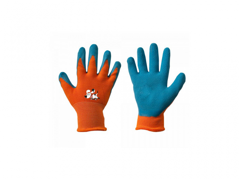 Schützende Kinder-Arbeitshandschuhe aus Polyester und mit Schaumlatex beschichtet.