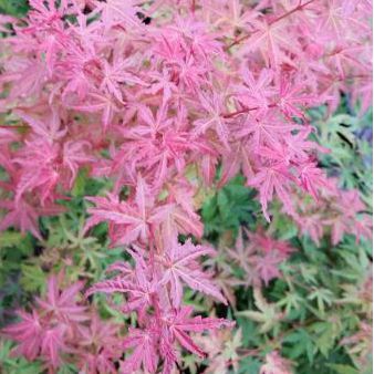 Beschreibung Die Ausgangsfarbe dieses Ahorns ist hellrosa, geht über in ein sanftes Braun, ein dunkles Grün, und Ende September übernimmt ein leuchtendes Rot den Taktstock.