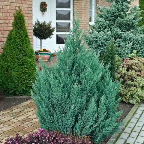 Er hat eine kegelförmige bis säulenförmige Kronenform, feine, blau-grüne Nadeln.