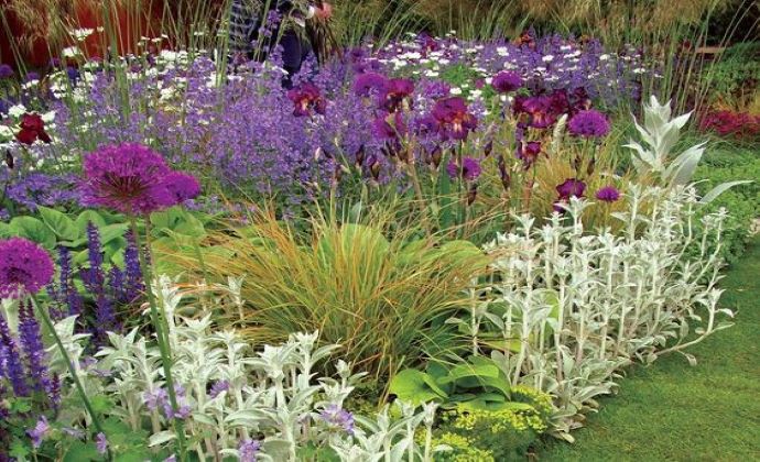 Salvia, Katzenschwanz und Kavyl sind ein Stauden-Trio, das sich seit langem in der Kombination bewährt hat. Alles Neutrale kann mit diesem Trio kombiniert werden, wie z.B. Crookshanks, Alchemilla oder Hosta und der Erfolg ist garantiert. Der Vorteil dieser Staudenkombination ist, dass sie fast das ganze Jahr über blühen.
