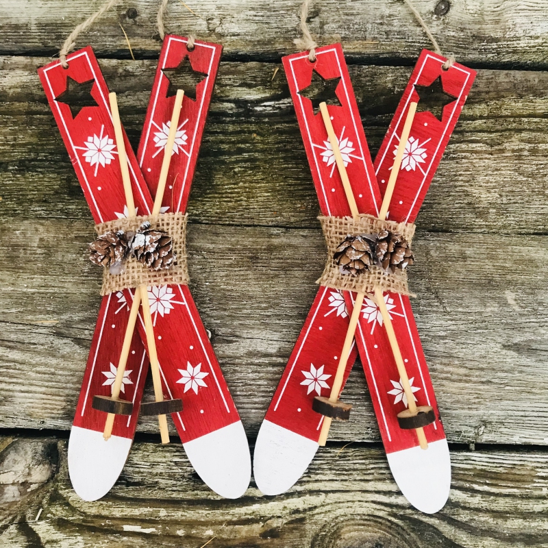 Deko-Ski aus Holz rot 21cm 2Stk