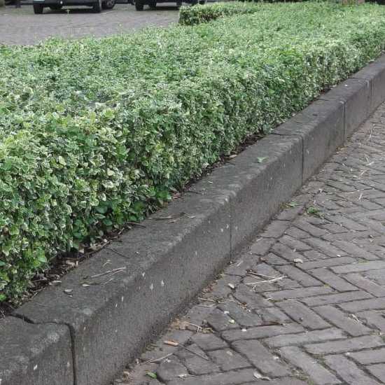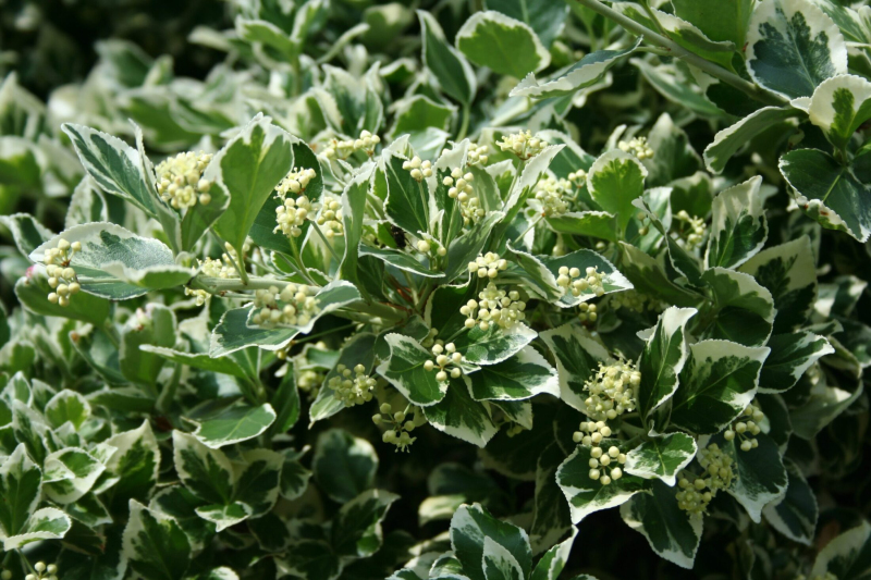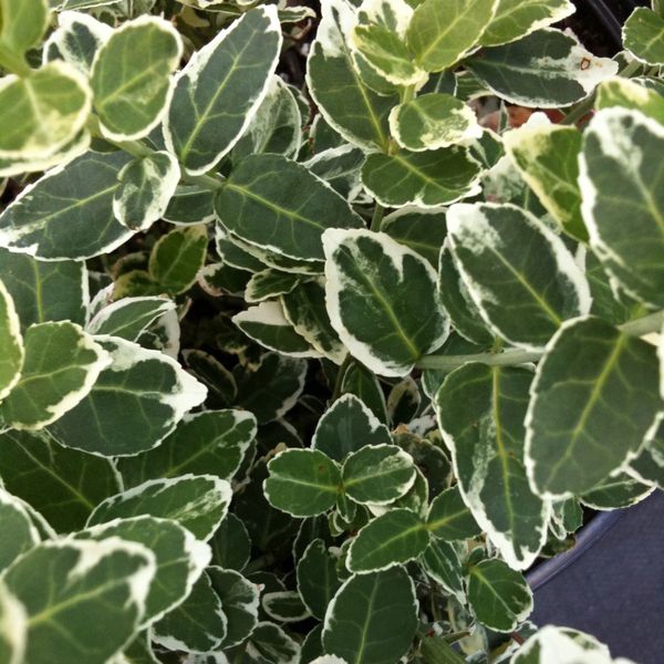 Vždyzelený neopadavý ker so zelenými listami s bielym lemom.