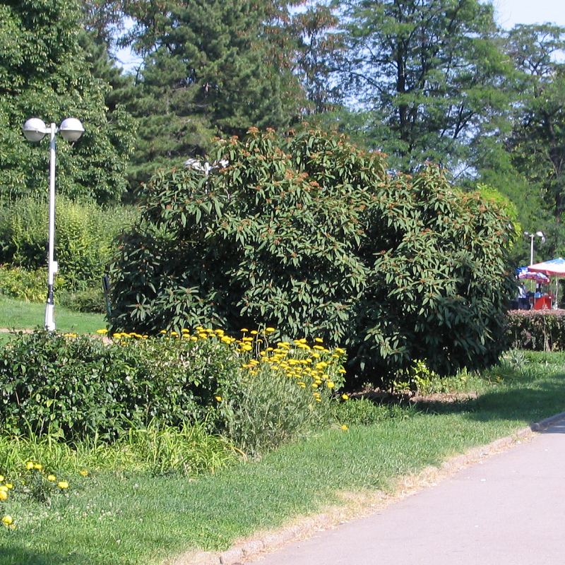 Durchaus verzweigter immergrüner Strauch mit kugelförmiger Krone. Wächst bis zu 3-4m hoch. Das Laub ist lang und dunkelgrün, die Blütenstände sind weiß. Er eignet sich für die Heckenpflanzung und verträgt kalkhaltige Böden gut.