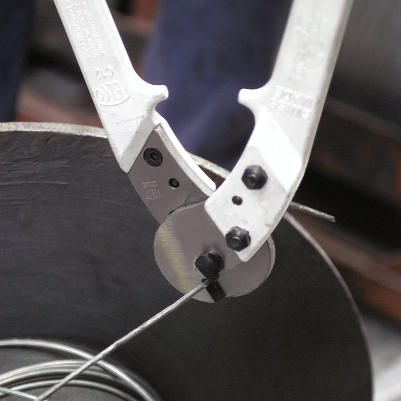 FELCO C12-Schneider eignen sich zum Schneiden von Drahtseilen und Kabeln bis zu einem Durchmesser von 12 mm, sie sind auch zum Schneiden von Metallstäben und Federdrähten geeignet.
