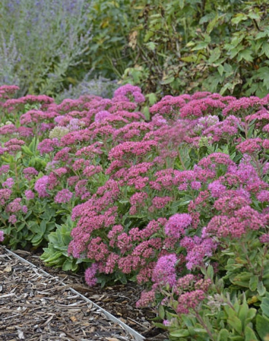 "Carl" (Sedum spectabile) bringt von August bis Oktober rosa Blüten hervor.