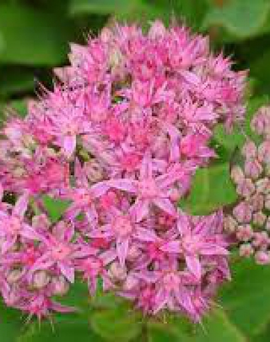 "Carl" (Sedum spectabile) bringt von August bis Oktober rosa Blüten hervor. Die Pflanze ist sehr dankbar für einen Standort in durchlässigem Boden, an einer sonnigen Stelle im Garten. Die Felsenfetthenne verträgt sowohl den Winter als auch härtere Fröste gut. Die aufrechte, büschelbildende Staude erreicht eine Höhe von etwa 50 cm.