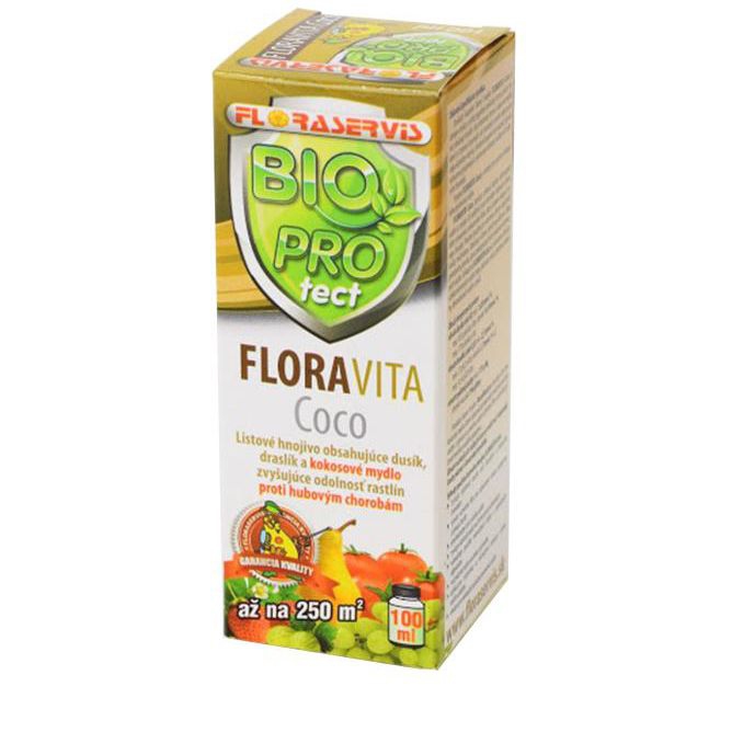 - Der flüssige Stickstoff-Blattdünger in Form von FLORAVITA Coco Konzentrat ist eine Stickstoffquelle in schnell verfügbarer Amidform und enthält zusätzlich Kalium in chloridfreier Form und vor allem Kokosnussseife, eine Mischung aus Kaliumsalzen der Fettsäuren von Kokosnussöl und Ölsäure. Diese Kaliumsalze der Fettsäuren tragen wesentlich zur Erhöhung der Widerstandsfähigkeit der Pflanzen gegen Pilzkrankheiten bei.