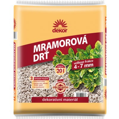 Marmorsplitt ist ein natürliches Material von weißer Farbe, das durch Zerkleinern von Marmor gewonnen wird.