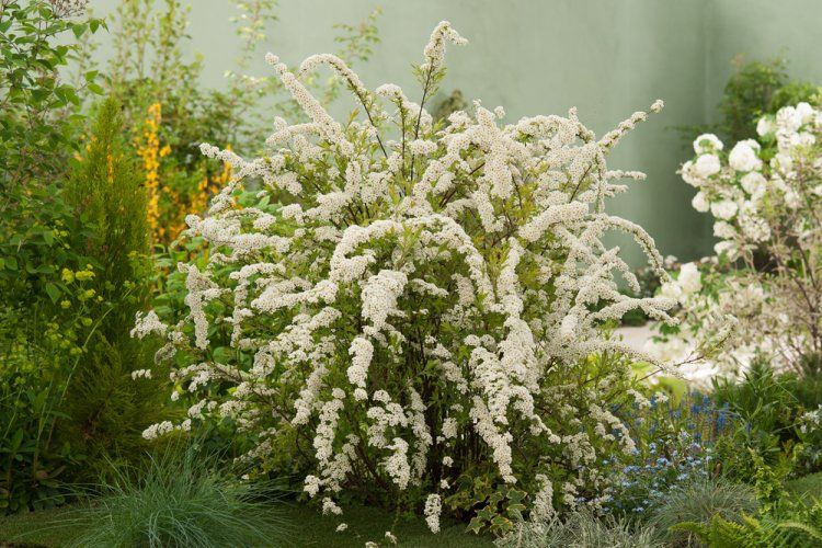 Der Graue Spierstrauch ist ein kompakter, sommergrüner Strauch mit bogenförmigen Ästen.