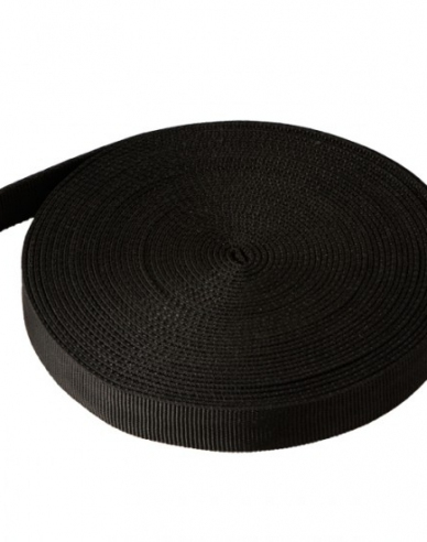 Schwarzer Baumgurt aus Gurtband. Hergestellt aus Polypropylen Monofilament.
