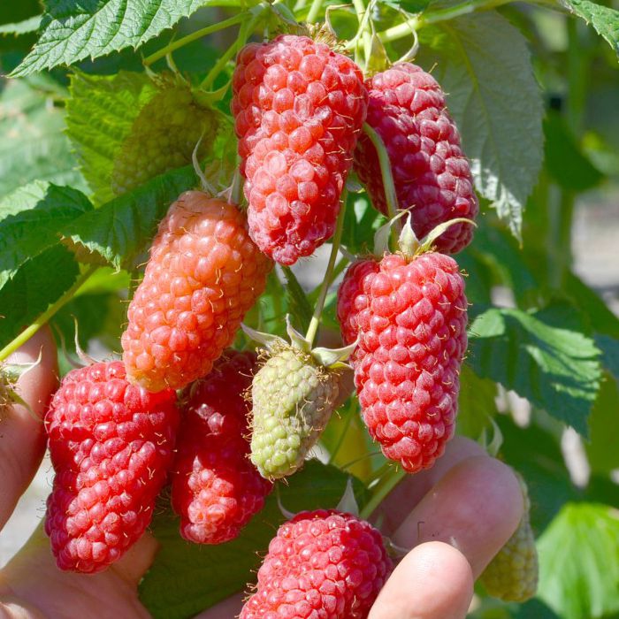 Malina Gordost Rosyi ist eine sehr gute und krankheitsresistente Sorte. Die Früchte reifen im Juli und sind groß bis sehr groß. Ihr Geschmack ist süß, saftig, aromatisch und typisch himbeerig. Die Gordost Rosyi Himbeere ist eine sehr ertragreiche Sorte, sie produziert 5 kg köstliche Himbeeren pro Scheffel und dank der Tatsache, dass sie dornenlos ist, wird man beim Pflücken nicht betrunken.