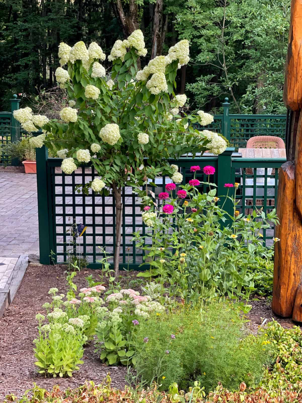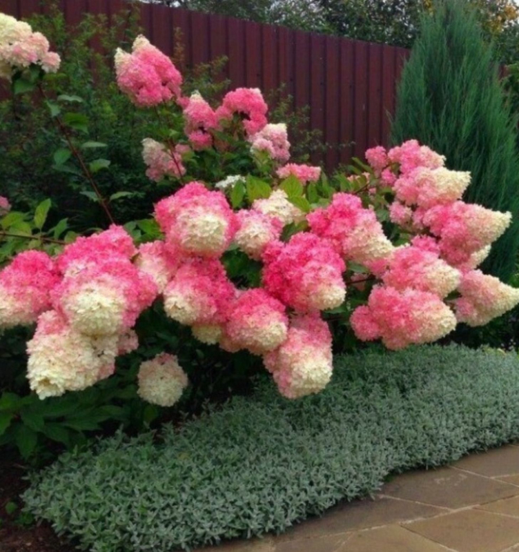Fraise Melba ist eine anspruchslose Sorte der creme-roten, metallenen Hortensie. Riesige, kegelförmige Blütenstände erscheinen an den Zweigen ab dem Hochsommer und sind bis in den Herbst hinein auffällig.