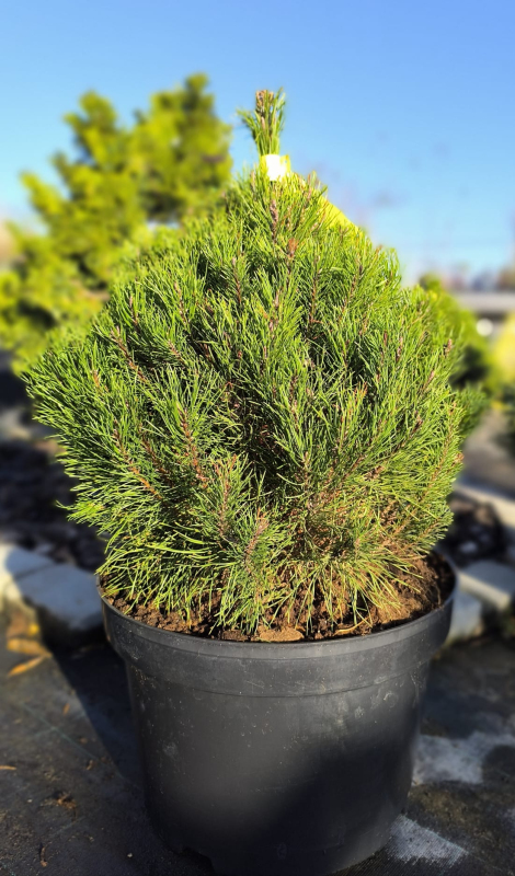 Die Pyrenäenkiefer ist eine bei uns heimische, höhere Kiefernart, die in einem Gürtel von Bulgarien über die Karpaten bis nach Nordpolen verbreitet ist. Sie ist eine etwas langsamer wachsende Unterart der Bergkiefer mit tiefgrünen, paarweise angeordneten Nadeln. Die Form ist baumartig = sie hat einen endständigen (zentralen) Stamm, der das wichtigste Unterscheidungsmerkmal zur gemeinen Kiefer ist. Die Pflanzen lassen sich durch geringfügiges Ausbrechen neuer Triebe im Frühjahr leicht erhalten.