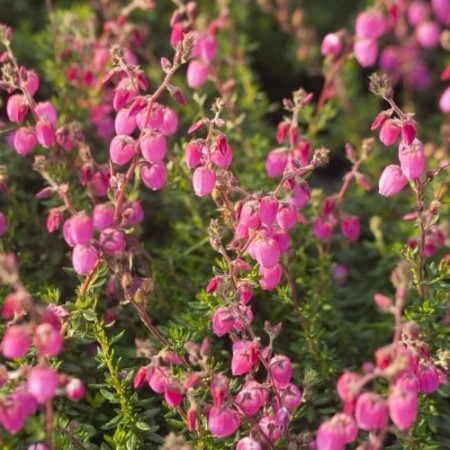 Diese niedrig wachsende Pflanze erreicht eine maximale Höhe von 60 cm. Sie wächst strauchartig und gehört zu den immergrünen Pflanzen. Sie besteht aus kleinen Blättern, die dunkelgrün sind. Die Blüten tragen verschiedene Schattierungen von Weiß, Rosa und Violett. Sie wachsen in langen Büscheln und haben die Form einer kleinen Glocke. Die Früchte sind eiförmige Kapseln. Die Pflanze benötigt eine Winterabdeckung aus Chinchilla. Die grünen Teile können gestresst werden.