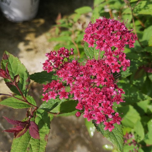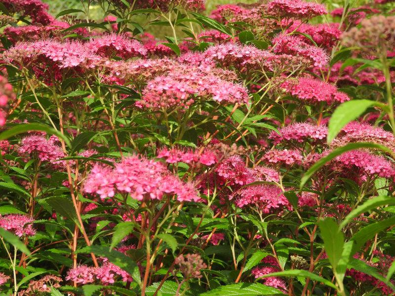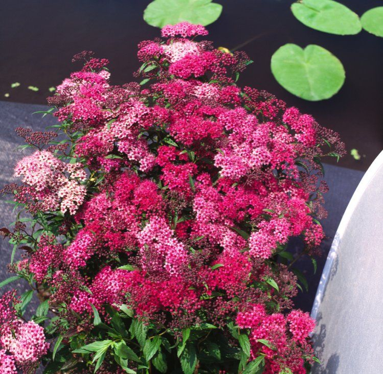 Der Japanische Bergahorn, Spiraea Japonica, ist eine sehr weit verbreitete Zierpflanze, die meist als Solitär gesetzt wird. Der Bergahorn zeichnet sich durch kleine, dicht stehende, zartrosa Blüten aus, die der Marinka-Pflanze ähneln. Der niedrig wachsende Thalebusch braucht nicht zurückgeschnitten zu werden und behält trotzdem seine kugelförmige Form. Seine Schönheit kommt besonders in Gruppen zur Geltung, aber auch als Solitär ist er reizvoll.