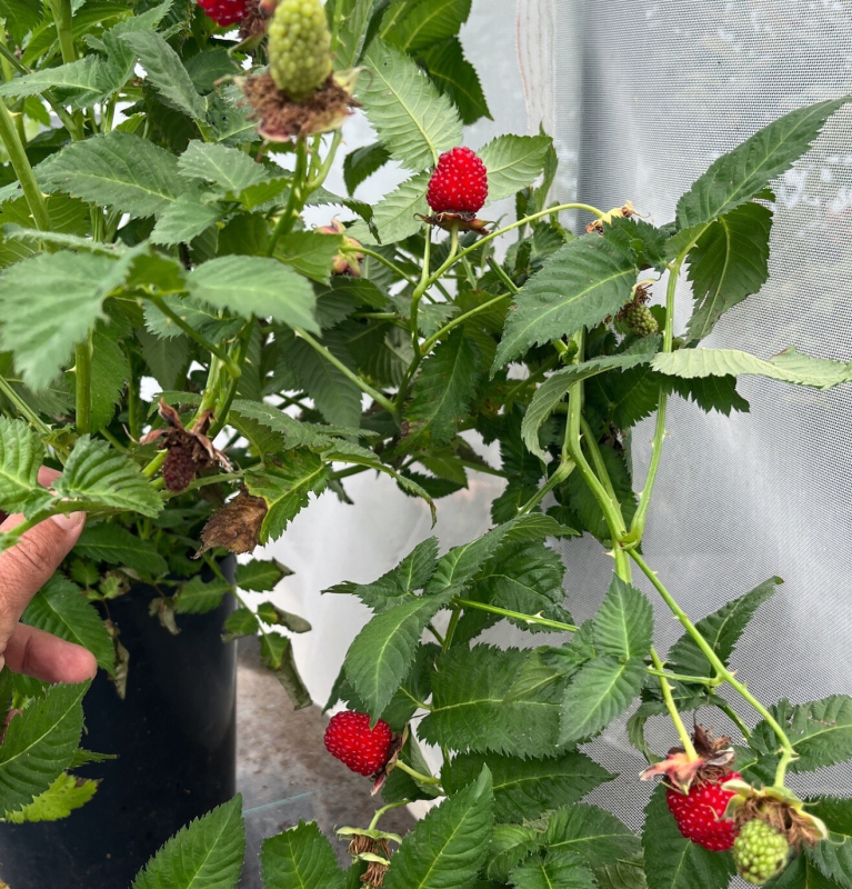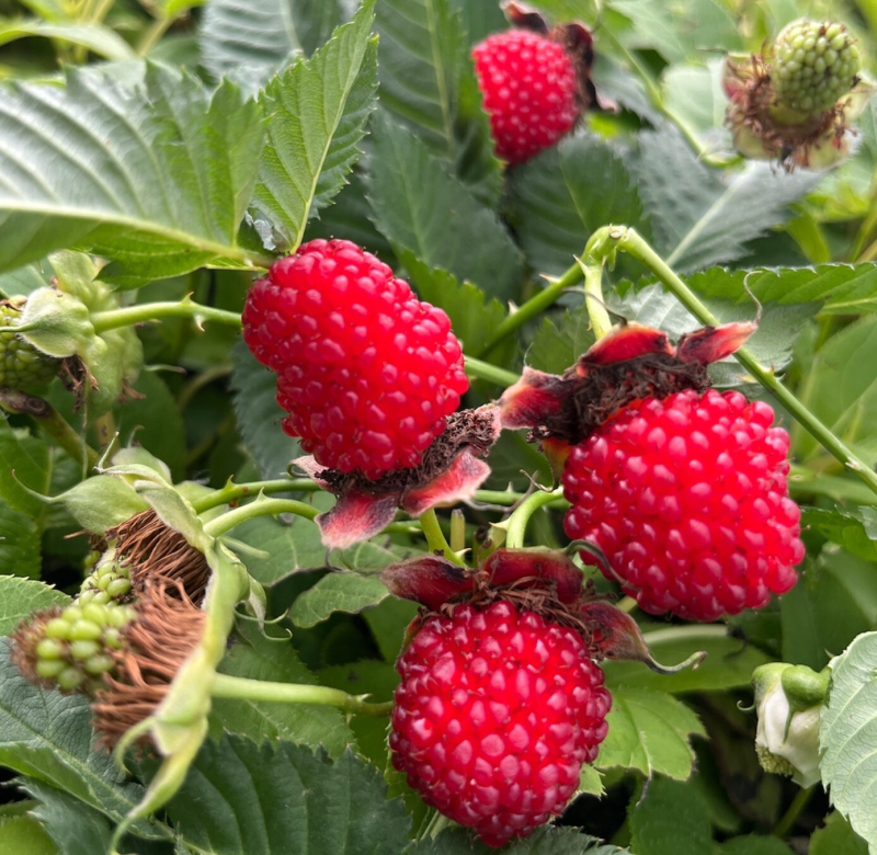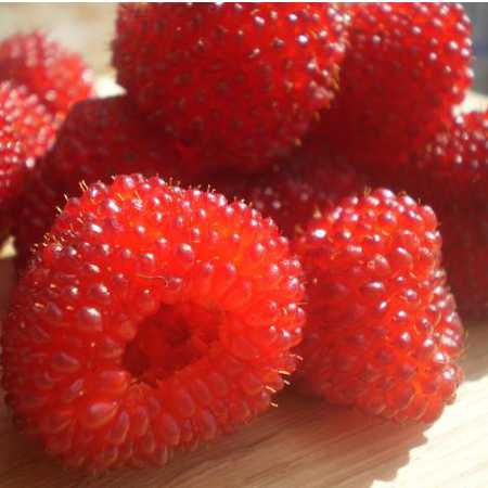Eine attraktive Kreuzung zwischen Himbeere und Erdbeere mit roten Beeren von ausgezeichnetem Geschmack.
