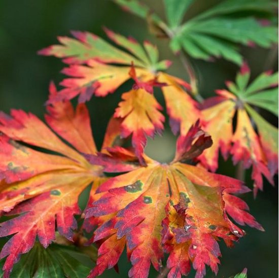 Japanischer Ahorn Aconitifolium ist die Sorte mit den vielleicht schönsten Blättern aller Ahorne. Er ist eine sehr gute Wahl, wenn Sie nur sehr wenig Platz haben, aber trotzdem einen kleinen Baum haben möchten. Er wächst nur etwa 15-30 cm pro Jahr und kann nach vielen Jahren eine Höhe von 3 Metern erreichen. Er bringt rote Blüten und Früchte hervor. Er ist besonders dekorativ mit seinen regelmäßigen, reich gegliederten Blättern, die sich im Herbst gelb, orange und rot bis intensiv violett färben. Er wird auch für die Gestaltung von Bonsai verwendet.