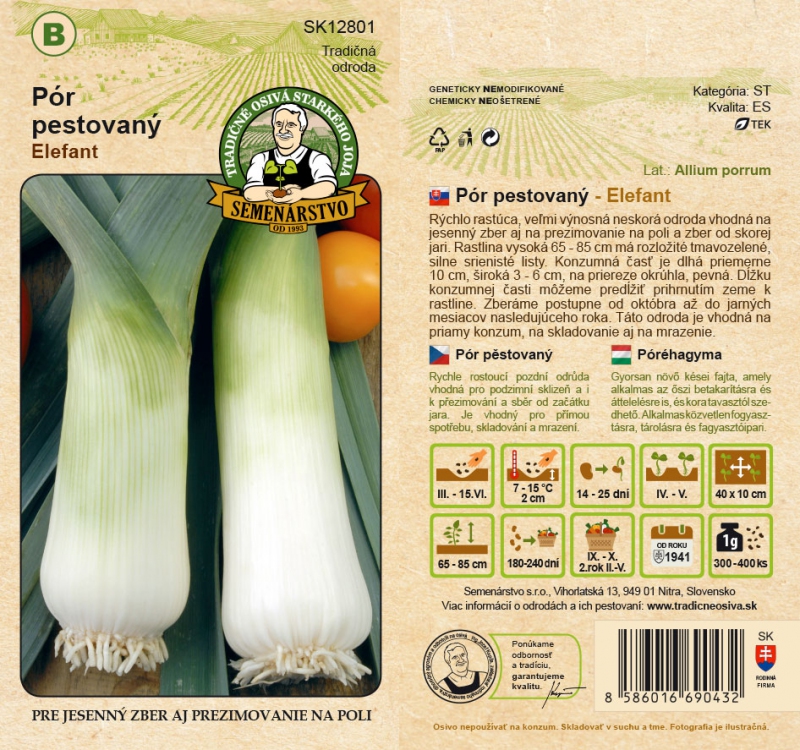 Sorte: LauchEine schnell wachsende, ertragreiche Spätsorte, die sich für die Herbsternte und für die Überwinterung im Feld und die Ernte im zeitigen Frühjahr eignet. Die 65-85 cm hohe Pflanze hat ausladende, dunkelgrüne, stark gezackte Blätter. Der essbare Teil ist im Durchschnitt 10 cm lang, 3-6 cm breit, im Querschnitt rund und fest. Die Länge des verzehrbaren Teils kann durch Zugabe von Erde zur Pflanze verlängert werden. Die Ernte erfolgt sukzessive von Oktober bis zu den Frühjahrsmonaten des folgenden Jahres. Diese Sorte eignet sich für den direkten Verzehr, die Lagerung und das Einfrieren.