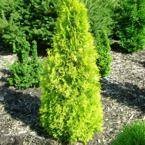 Eine sehr schöne Sorte mit goldgelber Nadelfarbe, die bis zu 4-5m hoch wird und sich für die Heckenpflanzung eignet, für sandige Lehmböden geeignet ist und Sonne und Halbschatten nicht scheut.