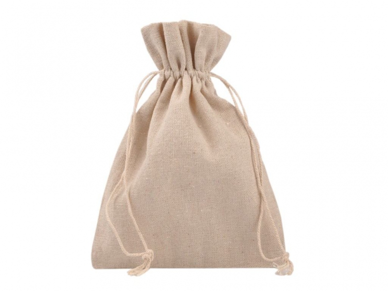 Der Leinenbeutel ist von hoher Qualität und stark. Er lässt sich leicht mit zwei Baumwollkordeln schließen.