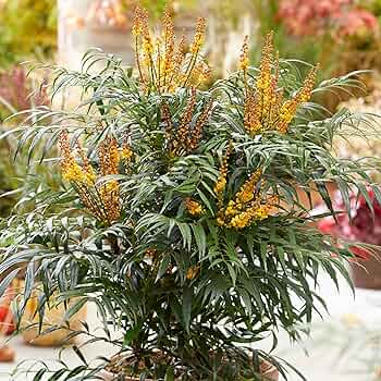 Mahonia VOLCANO ist eine kompakte Sorte, die durch ihr tiefgrünes, gefiedertes Laub und ihre ungewöhnliche Blüte besticht. Die kugelförmigen, winzigen Blüten, die aus den Stängeln wachsen, sind orange-gelb und gehen aus kupferroten Knospen hervor. Die Sorte hat keine Dornen, die Blätter sind sehr schmal und ähneln Farnblättern. Sie erreicht eine Höhe von bis zu 1 m und ist damit ideal für kleinere Gärten. Diese Sorte ist das ganze Jahr über dekorativ und bis zu -15 Grad winterhart.