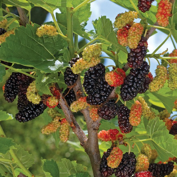 Morus alba Gerardis Dwarf ist ein kompakter, großblumiger Maulbeerbaum, der sich aufgrund seines kurzen Wuchses, der eine Höhe von 2 Metern erreicht, für kleine Gärten eignet.