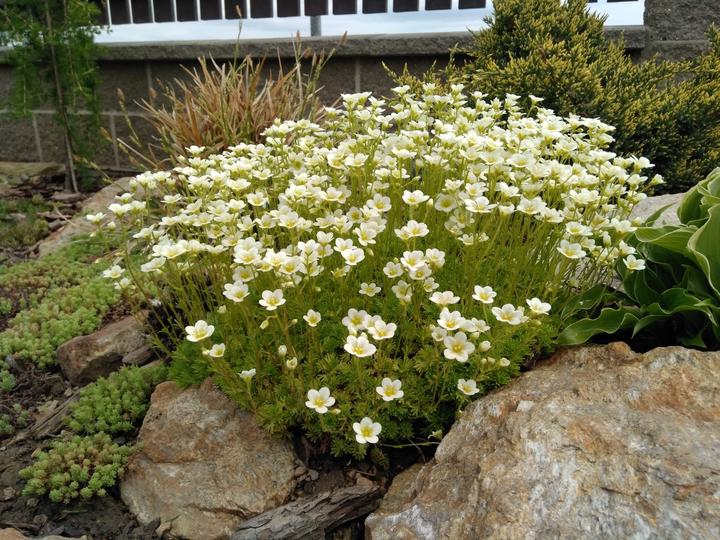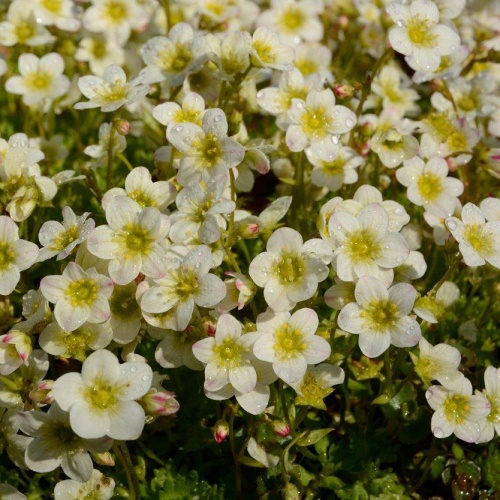 Bildet dichte Polster aus kleinen, blattreichen Rosetten. Die Pflanzen blühen im Frühjahr üppig mit schneeweißen Blüten. Geeignet für die Bepflanzung von Steingärten mit leichtem Halbschatten. Sie bevorzugt leicht saure Böden, die während der Wachstumsperiode nicht zu stark austrocknen sollten.