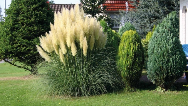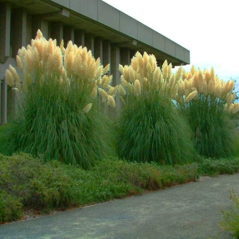 Cortaderia Evita ist eine Züchtung des modernen Ziergrases von kürzerem Wuchs (ca. 120 - 150 cm hoch während der Blüte). Die Blüten sind massiv, cremefarben, die Stängel sind dicker. Sie sind auch zum Schneiden und Trocknen geeignet.