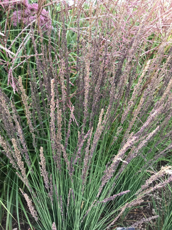 Molinia caerulea Moorhexe ist eine Sorte mit bräunlich-schwarzen, lattenförmigen Blütenständen.