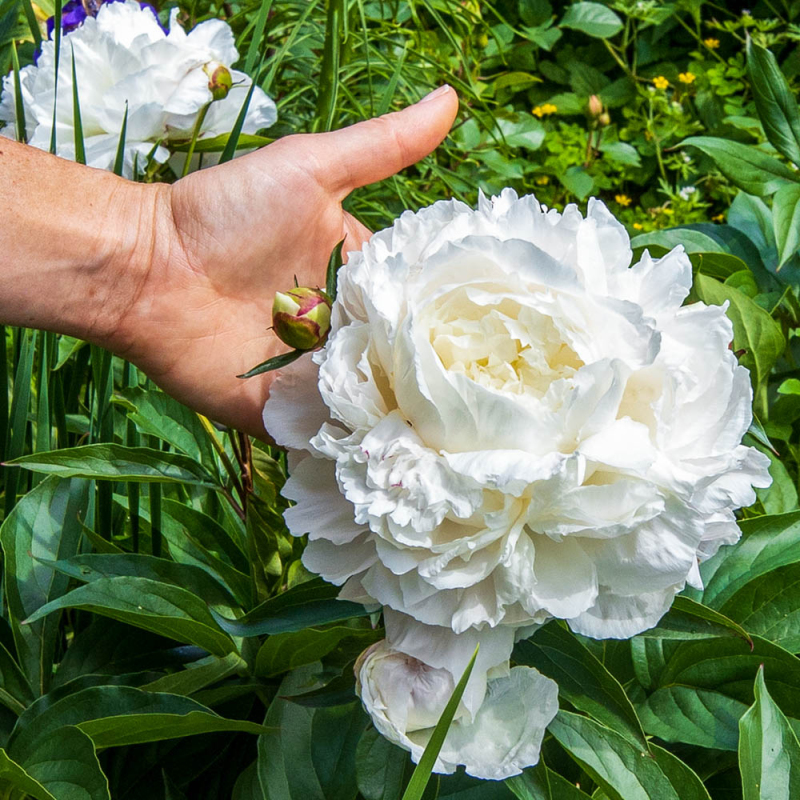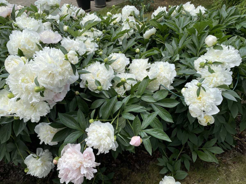 Duchesse de Nemours ist eine Sorte mit gefüllten großen weißen Blüten. Sie blüht im späten Frühjahr/Sommer. Sie ist eine beliebte Blume zum Schneiden und Trocknen. Mit einer Höhe von 80 bis 100 cm sind Pfingstrosen langsamer wachsend und brauchen mehr Zeit, um sich an eine neue Umgebung anzupassen.