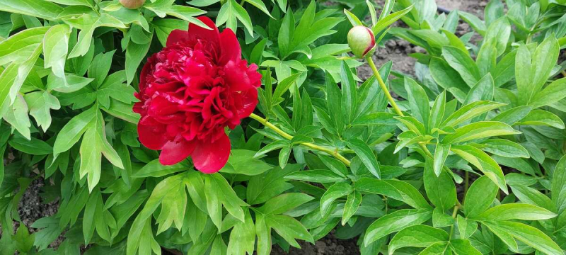 Paeonia Eliza Lundy - eine reizvolle Neuheit unter den kleinen Pfingstrosen mit einer Blütenhöhe von bis zu 65 cm. Die Sorte ist dunkel, wenn sich die Blütenblätter entfalten, verblasst aber später zu einem faszinierenden Dunkelrot. Die Blüten entfalten sich im späten Frühjahr und eignen sich für den Schnitt in Vasen und Arrangements.