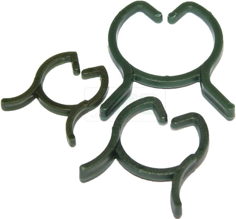 Grüne Polypropylen-Klammern zur Befestigung von Pflanzen an Bambusstangen. Sie lassen sich leicht öffnen und aufstecken. Klammergröße 20 mm. Packung mit 20 Stück.