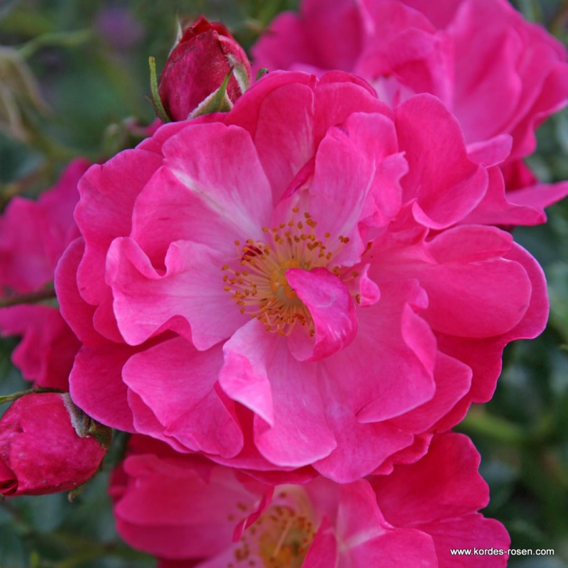 Das kräftige Rosa wird als "hot pink" bezeichnet und hat dieser frei blühenden Kleinstrauchrose den Namen Hotline eingebracht. Die Farbe der mittelgroßen, leicht gefüllten Blüten ist in der Tat sehr intensiv und bleibt auch bei starker Sonneneinstrahlung auf Dauer stabil. Aufgrund ihres dichten Wuchses ist sie auch im Garten vielseitig einsetzbar - sowohl in gemischten Beeten als auch in flachen Pflanzungen oder insbesondere an nördlichen Frieswänden. Ihre hervorragende Blattgesundheit hat Hotline bereits in der ADR bewiesen, die sie seit 2016 trägt.