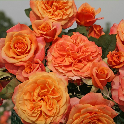 Eine Kronenrose mit stark gefüllten, eleganten Blüten, immer in Büscheln.