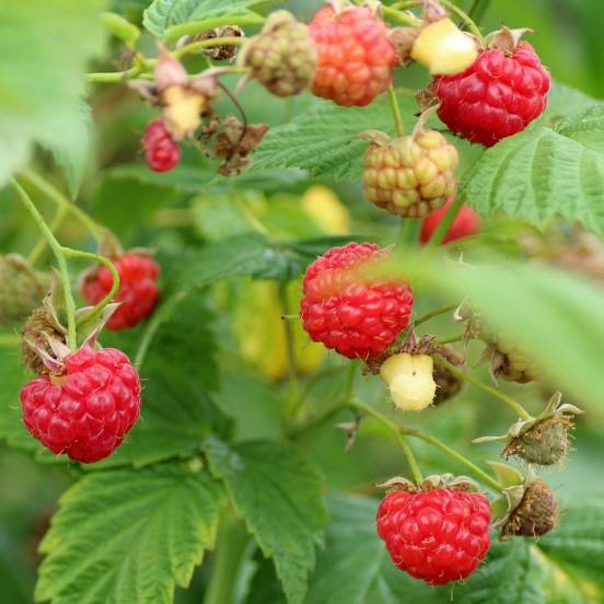 Rubus idaeus AUTUMN BELLE (fruchtet sowohl an ein- als auch an zweijährigem Holz).