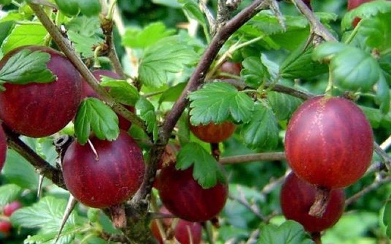 Ribes Captivator. Die großen aromatischen Früchte sind leicht zu pflücken. Sie sind vor allem bei Kindern sehr beliebt, da sie fast keine Stacheln haben. Ihre geringe Anfälligkeit für Mehltau macht sie ideal für den Hausgarten.