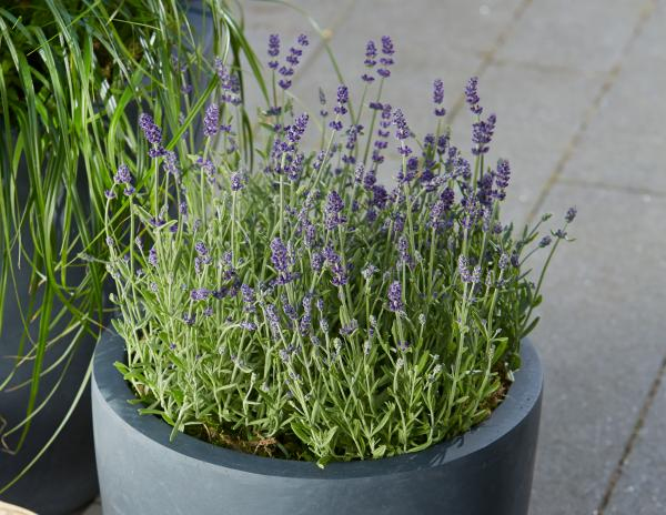 Levandula officinalis (schmalblättrig) ist eine im französischen Teil des Mittelmeers beheimatete Staudenart. Sie bildet höhere Stängel mit länglichen Ähren mit violetten Blüten. Levandula kann ziemlich lange blühen, normalerweise von Ende Juni bis August. Die Blätter sind immergrün, schmal, im Winter und Frühjahr blaugrün und im Sommer hellgrün. Sie sind nicht bodenbedürftig und wachsen am besten in trockeneren, gut durchlässigen, kalkhaltigen Böden an einem sonnigen Standort. In staunassen Böden gedeiht sie nicht. Ein regelmäßiger, jährlicher Rückschnitt ist erforderlich, um eine kompakte Form zu erhalten. Der ideale Zeitpunkt für den Rückschnitt ist nach der Blüte, indem er auf ein Drittel der Höhe zurückgeschnitten wird.