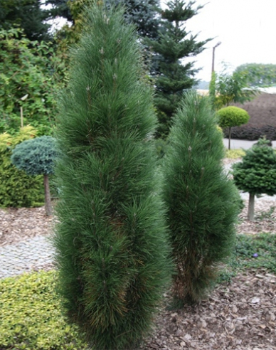 Es ist eine der dichtesten Säulenkiefern. Sie zeigt ihre Schönheit besonders als Solitär. Sie macht sich auch gut in einem Steingarten, aber wegen ihrer Größe ist es ratsam, dass der Steingarten größer ist.