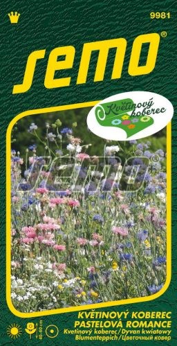 Pastel Romance ist eine subtile, fast nostalgische Farbmischung, die während der gesamten Blütezeit ein perfektes Zusammenspiel von Ton-in-Ton-Farben beibehält. Die Subtilität der Farben reicht von Weiß über Blassrosa, Altrosa bis hin zu Violett. Die Aussaat erfolgt jährlich im Mai-Juni. Der Blütenteppich kann von Juli bis September bewundert werden. Die Höhe der Pflanzen beträgt 40 bis 60 cm. Die Mischung besteht aus 11 einjährigen Pflanzen, z.B.: Strohblume, Kornblume, Niedrige Schönheit, Niedrige Scharlach, Malve, Ackerwinde, Blaue Kornblume, Statice, usw.