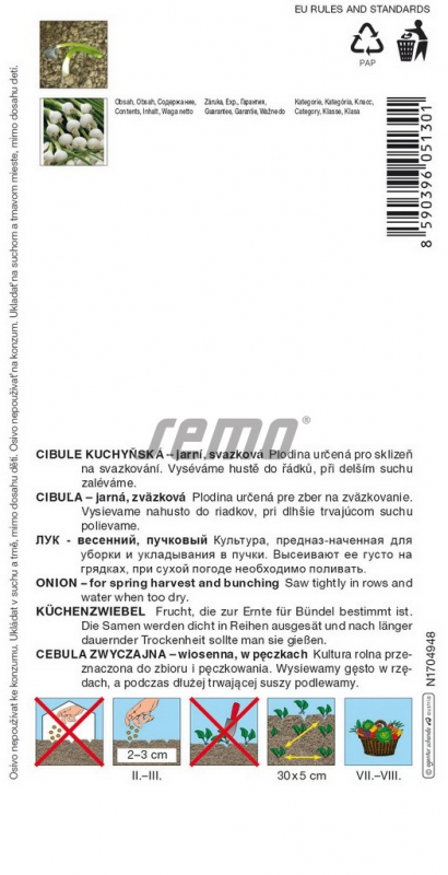 Sorte: ZwiebelRanila Zwiebel ist eine sehr frühe Sorte mit dunkelgrünen Blüten, die weiße Zwiebeln bilden. Die Sorte eignet sich zum Bündeln oder zur späteren Trockenernte von mittelgroßen weißen Zwiebeln. Sie ist nicht für die Überwinterung vorgesehen.