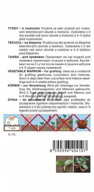 Sorte: KürbisGurken- und Melonenveredelung Topf Bolt F1 - neue Unterlage, die speziell für die Veredelung von Gurken und Melonen gezüchtet wurde - interspezifische Kreuzung Cucurbita maxima x C. moschata Typ Tetsukabuto. Die Sämlinge dieser Unterlage wachsen sehr gleichmäßig und haben gleichzeitig einen starken fleischigen Stiel, was die Veredelung wesentlich erleichtert. Bolt ist sehr widerstandsfähig gegen Fusarium-, Pythium- und Rhizoctonium-Pilze. Veredelte Pflanzen haben einen kräftigeren Wuchs, einen höheren Fruchtansatz, sind widerstandsfähiger gegen Kälte und andere Stressfaktoren und haben eine deutlich längere Lebensdauer als wurzelnackte Gurken oder Melonen.