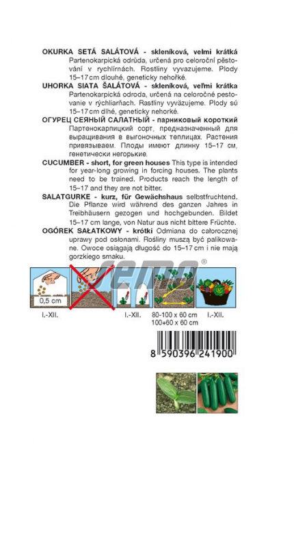 Sorte: GurkeEine sehr frühe parthenokarpische Salatgurke. Sie hat sehr kurze Früchte von 15-17 cm Länge. Die Früchte sind mittel- bis dunkelgrün, mit stumpfen Enden. Sie haben eine feste Schale und sind kurz lagerfähig. BABY ist für den ganzjährigen Anbau in Gewächshäusern, Polytunneln und Plastiktunneln geeignet. Sie kann auch für die Produktion von Mini-Pickles verwendet werden, d. h. für 8 bis 10 cm langes Salatgrün. In diesem Fall sollten sie mindestens jeden zweiten Tag geerntet werden.