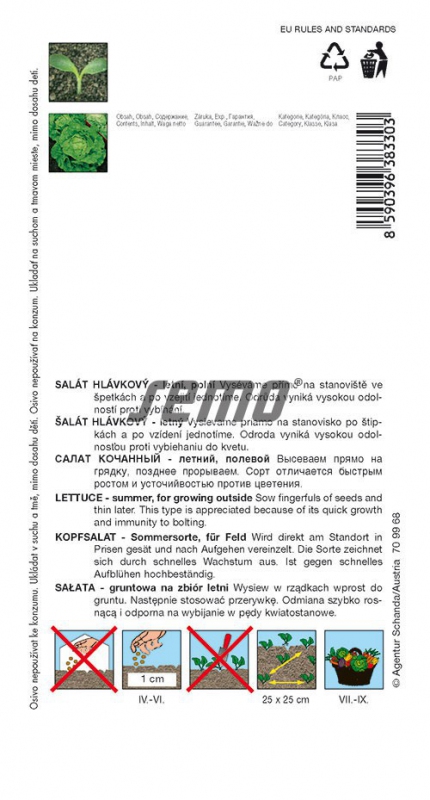 Ein Sommersalat mit großen, zarten, gut verschlossenen Blattsalaten von angenehmem Geschmack und hoher Schossfestigkeit. Er ist gesund und widerstandsfähig gegen die Krautfäule und das Virusmosaik des Kopfsalats. Er kann von März bis Ende Juni ausgesät werden. Die Wachstumsperiode beträgt 71 Tage.