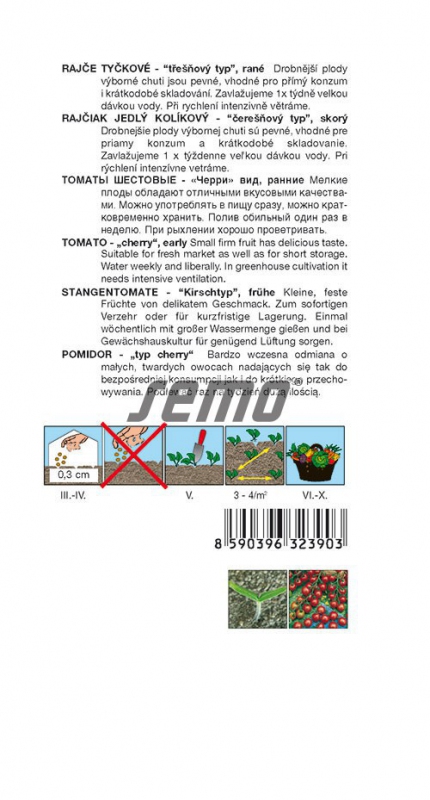 Sorte: TomateDie Strillo F1 Peg Tomate ist eine Kirschtomate mit Früchten, die etwa 15 Gramm wiegen. Die Früchte sind fest und widerstandsfähig gegen Risse, aber dennoch sehr schmackhaft und süß. Sie ist eine ertragreiche Hybride mit langen Trauben, die 15 bis 18 Früchte tragen. Eine für Gewächshaus- und Freilandanbau geeignete Tomate, resistent gegen Verticillium-Welke, Fusarium-Welke und Nematoden.